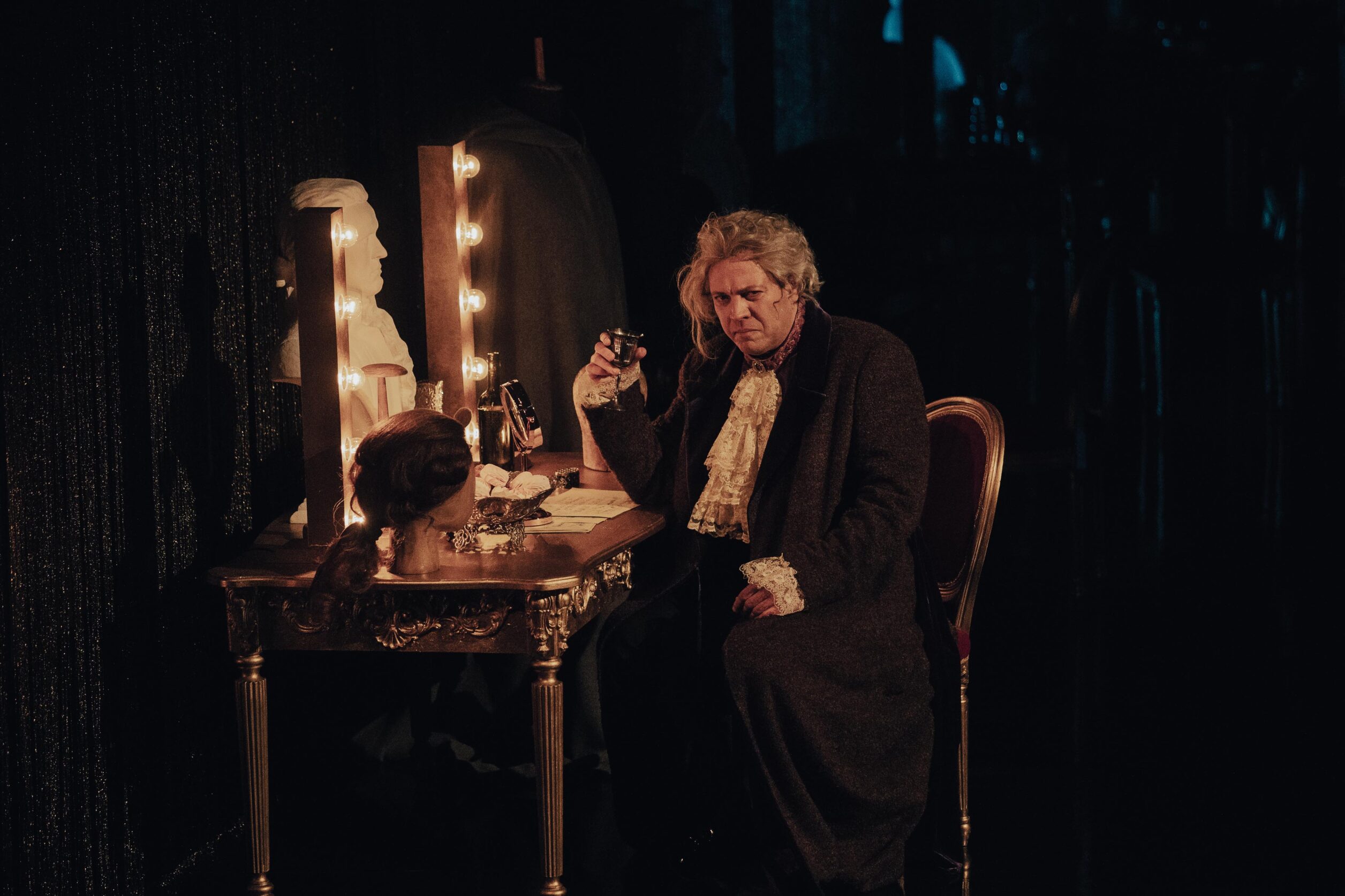 Mozart. Niinemetsa Mozarti portree on väga tänapäevane ja elus: ta meenutab Instagrami-staari, kes ajab justkui eimillegi tegemisega kokku miljoneid, seejuures kui meie peame miinimumpalga eest kontoris istuma. Eesti Draamateatri Mozart pole siiras ja lihtsameelne lapsesuu, ta on muutunud irooniliseks ja õnnetuks: on oma andes veendunud ja saab aru, et keisri õukond tema kompositsioonide uudsust hinnata ei oska. Ta suhtub õukonda varjamatu üleolekuga.