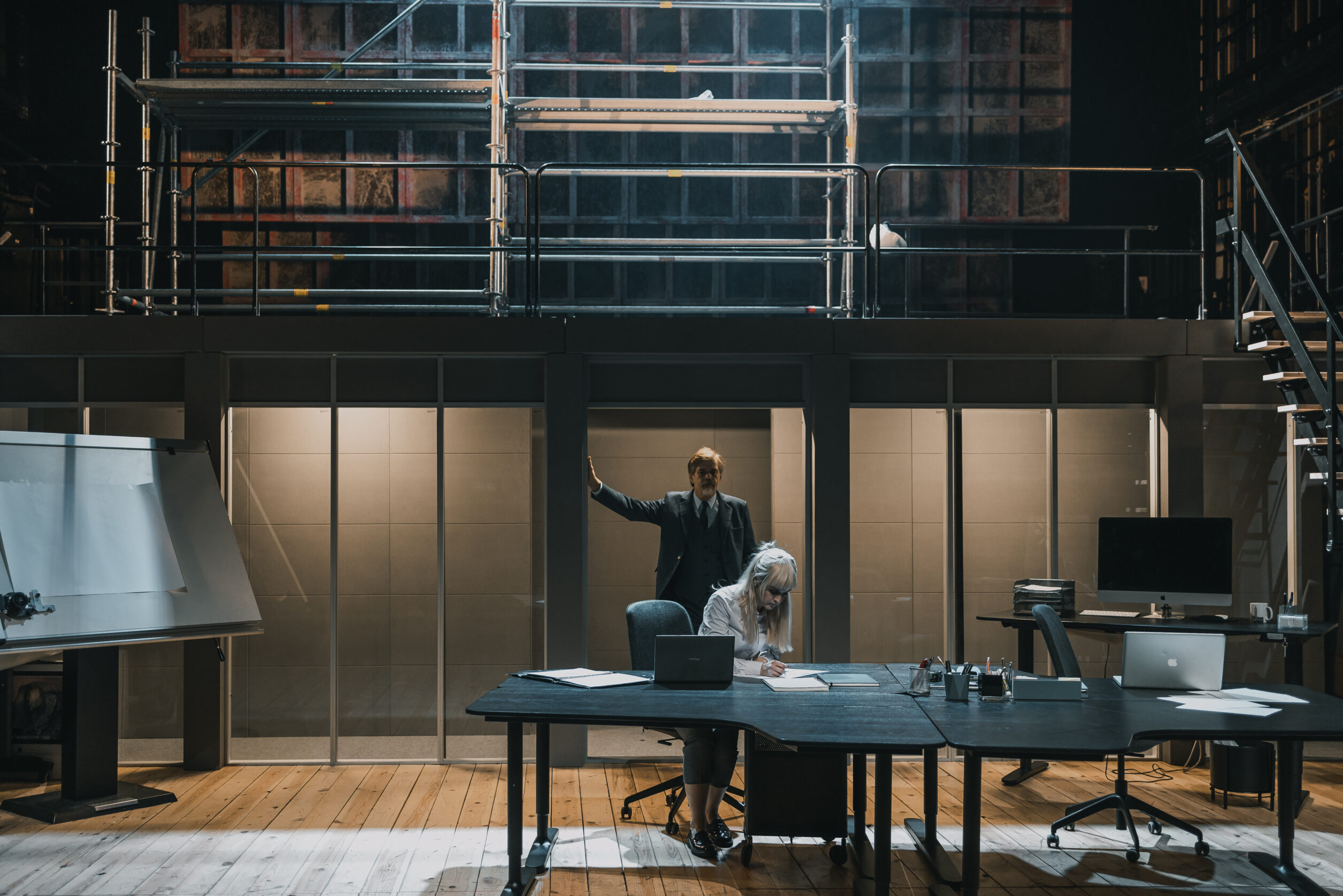 – Tänapäevane arhitektuuribüroo ja tellingud draamateatri laval.