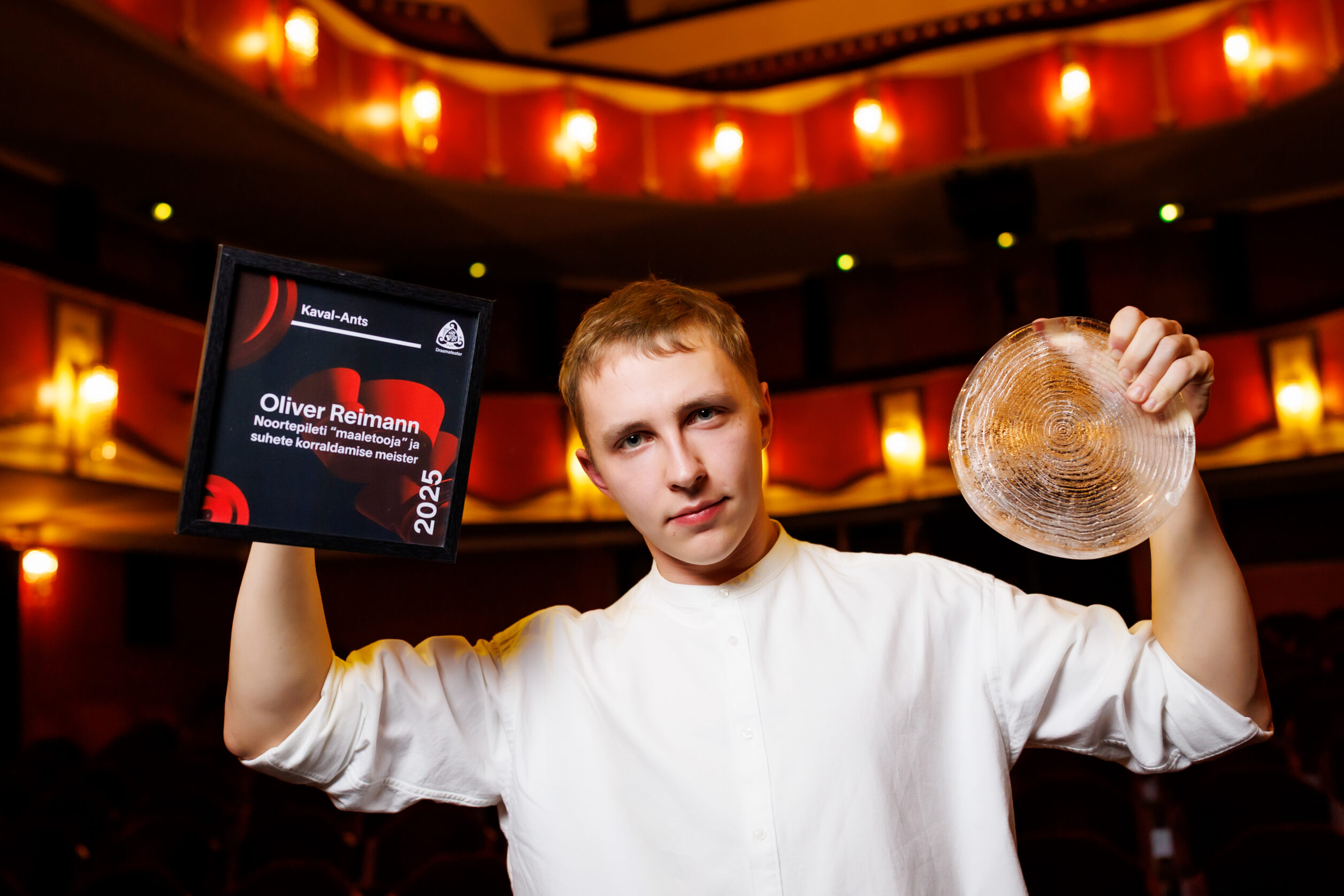 Kaval-Antsu tiitli andsid teatrijuhid EMTA lavakunstikooli 32. lennu tudengile Oliver Reimannile Noortepileti „maaletoomise“ ning meisterliku suhete korraldamise eest.