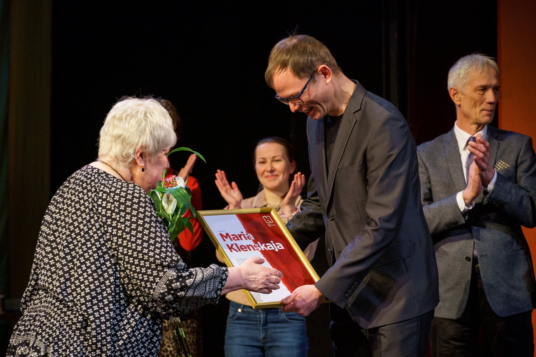 Enne ENL auliikme staatuse välja kuulutamist õnnitles Maria Klenskajat äsjase sünnipäeva puhul koduteatri juhtkond. Eesti Draamateatri juht Rein Oja tõi esile näitlejanna imetlusväärset mälu ja huumorimeelt, oskust lugusid rääkida ja teha suurepäraseid rolle. Päevakangelane võttis õnnitlused ja austusavaldused vastu talle omaselt – peene huumoriga pikitud tagasihoidlikkusega. Publik austas näitlejannat püsti seistes ja kaua aplodeerides.